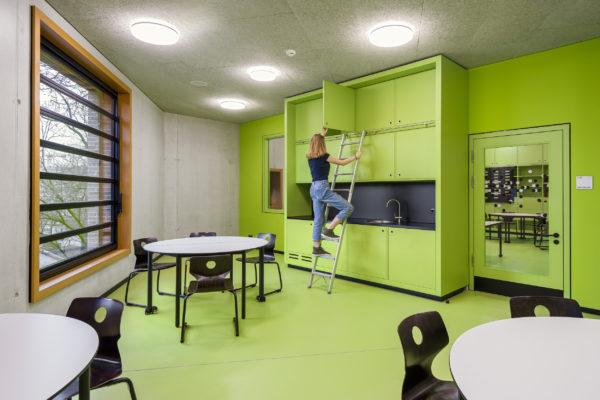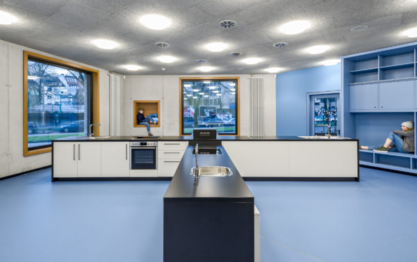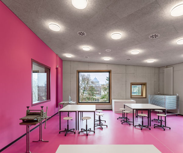 In Cologne, on the edge of an inner-city park, a network of various educational institutions is being created, the ‘Altstadt Nord educational landscape’. In addition to the existing grammar school and evening grammar school, five new buildings were realised by gernot schulz : architektur: an extension for a listed primary school, a day care centre, a secondary school as well as a study building and a canteen and studio building, which are available for use by all institutions as so-called composite buildings. The interweaving of uses raises the question of the relationship between school and public space anew. The answer: an ensemble of several buildings whose intermediate spaces are defined as public space. Only the day care centre and primary school still have protected outdoor spaces, while the secondary school uses the existing park as its schoolyard. The public space thus borders directly on all the educational buildings, allowing citizens to enter into a direct dialogue with the buildings, their interiors and thus the elementary good of ‘education’.