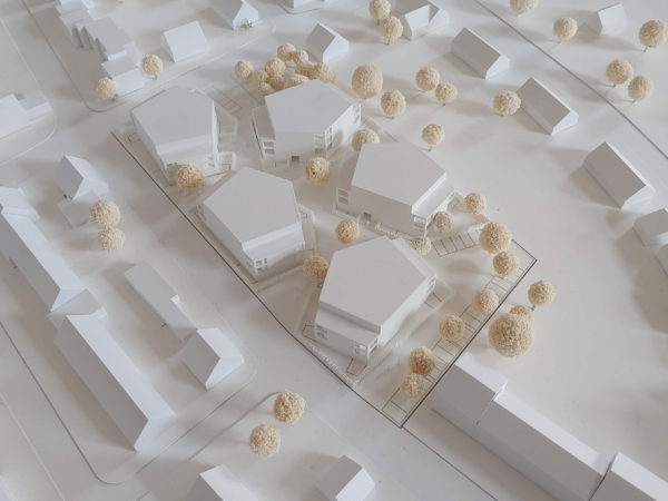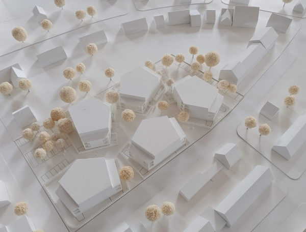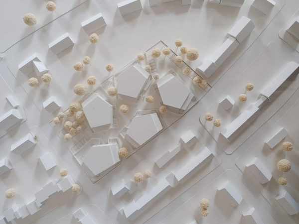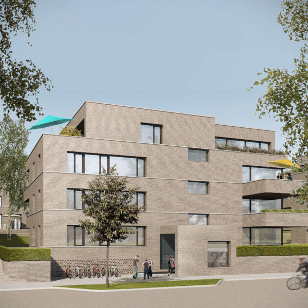 The “Herkenbuscher Weg” project in Grevenbroich is a sustainable residential quarter with polygonal building structures that allow for high density without compromising the quality of living spaces. The buildings are identical in construction but contain a diverse mix of apartments, promoting a mixed neighborhood. Open loggias, generous setbacks on the upper floors, and a finely structured facade create a small-scale, harmonious architecture.