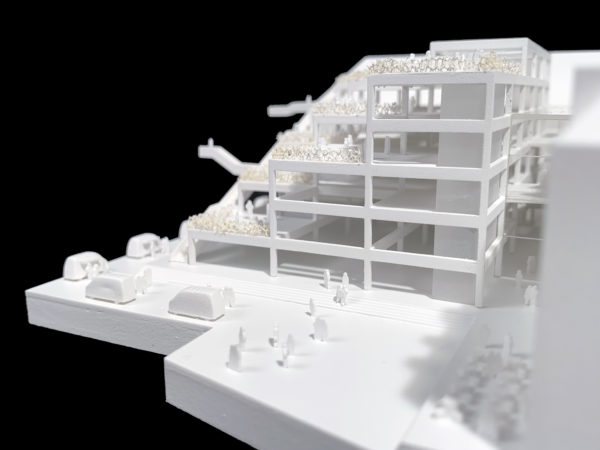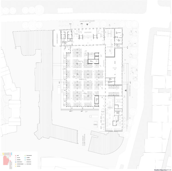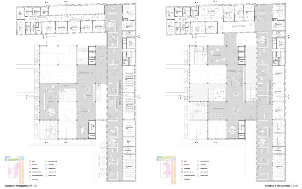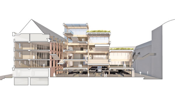 The structural expression and stepped cubature of the new building refer to the structure, expression, scale and grain of the neighbouring brewery buildings. As with the old commercial buildings, the shape and height of the new building develop from its internal functions. Wood as the primary building material of the new building, urban kitchen gardens and public spaces on the terraces of the new building open up a variety of places for the citizens of Bochum to experience, utilise and relax – accessible at any time and for everyone. The themes of market, education, enjoyment, community, sustainable construction and improved urban microclimate through the green, moisture-retaining plant terraces are given visual expression through the architecture of the new building. The open-space areas above the market hall emphasise the transformation of what was understood by a library in the past and what the library and in particular the Bochum House of Knowledge will be in the future: a place of communication, debate, learning from and with each other in spatial situations that can be reprogrammed and experienced again and again.