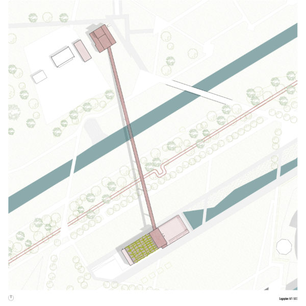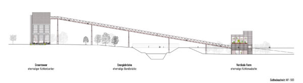 Se propone retirar los revestimientos de ladrillo del puente de cinta y dejar al descubierto la pasarela de rejilla. El objetivo es permitir el acceso opcional al puente a particulares o grupos registrados, posiblemente en ocasiones especiales. El tema del viejo y el nuevo camino de la energía a través del puente se visualizará mediante una instalación artística de luz. En las barandillas del puente se colocarán jardineras con hierbas y otras plantas resistentes para abastecer el servicio de restauración. Las plantas trepadoras rodearán la estructura por los grandes soportes.