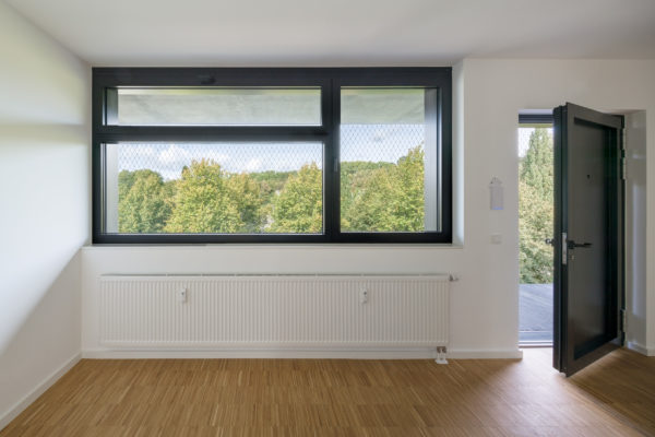Ante la crisis general de la vivienda, la empresa privada de construcción de viviendas Haus Baden hizo examinar sus propiedades existentes para estudiar la posibilidad de densificarlas. Encontramos lo que buscábamos en una parcela de Hürth, cerca de la autopista pero también en las inmediaciones del cinturón verde exterior de Colonia. Aquí se están construyendo 18 pisos que pueden utilizarse como pisos compartidos de 2 dormitorios o pequeños pisos de 2 habitaciones.